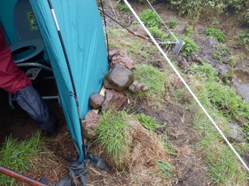 | 6/26、雨の中、テント型携帯トイレブース設置 |