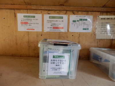 | 小屋内に配備した無料の携帯トイレ | 完成。強風で倒壊しないように願う |