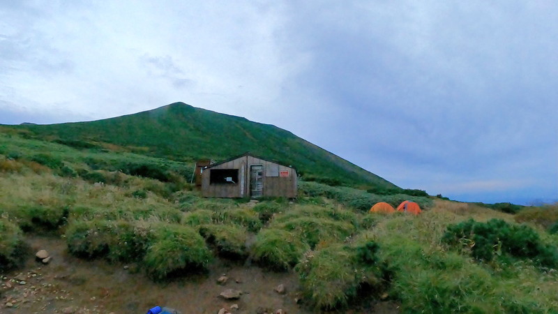 活動に合わせオプタテシケ山登山も実施。27日入山時は曇りだったが、森林限界を越えてから降雨となり、点検清掃活動は28日に実施した。参加メンバー5名のうち3名が28日午前に小屋からオプタテシケ山をピストンする。登山道では排泄物、ティッシュ、ゴミなどは見当たらず。27日の小屋利用者は支部メンバー5人以外2人、テント利用者1人。降雨のため小屋から下の登山道は泥濘と笹やハイマツがかぶり非常に歩きづらく難渋した。早急な登山道整備の必要性を感じた。2週連続で週末が悪天候のため入山者が少なくトイレや野営地も利用者が少なかったと思われ、その分汚れ等も無かったようだ(報告:藤木俊三さん) |