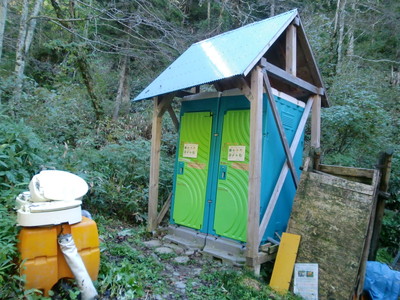 幌尻山荘には、バイオトイレ1基と工事用仮設トイレ2基があります。