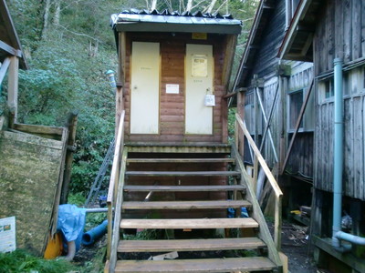 | 幌尻山荘のバイオトイレ(右)と仮設トイレ(左)(2007.9.17撮影) |
