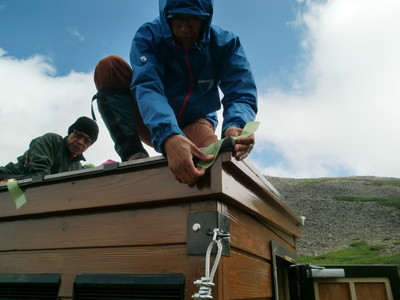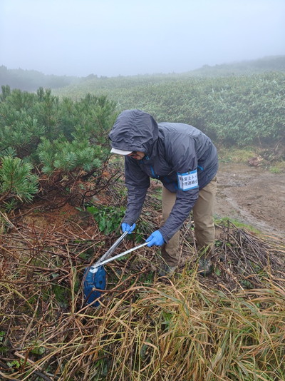 登山者のマナー向上と各山岳団体などの協力により、小屋とトイレブース周辺は、ほとんどゴミや汚れはありませんでした。私は前日より避難小屋に泊まりました。小屋の利用者は私と1パーティ3名。テントは2張。当日に来てくれた3名は雨の中来てもらって助かりました。外の掃除は雨風が強く実施できませんでしたが、前日に見回った時にはありませんでした。 (報告:大場智行さん) |