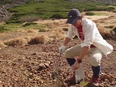 周辺の汚物は、テント場近くに上から石をかぶせわからないようにしてあり、ティッシュは残されていなかった。携帯トイレブースがあるのに使用しないのは、持参していない、ブースまで我慢できない、携帯トイレを使うのが面倒くさい、自然に分解するから良いと考える等いろいろな理由が考えられるが、具体的な対策を今後も考えていきたいと思う。(報告:澤村祐子さん) |